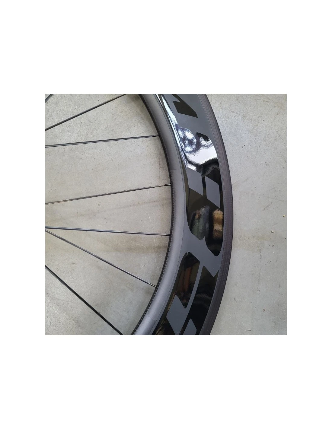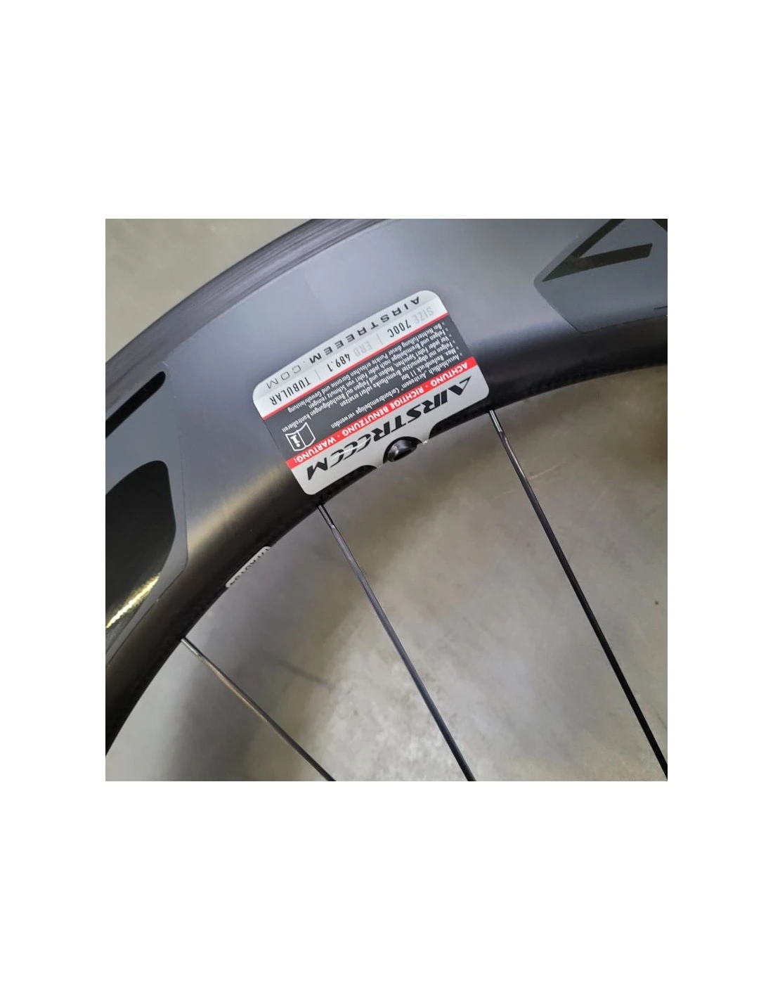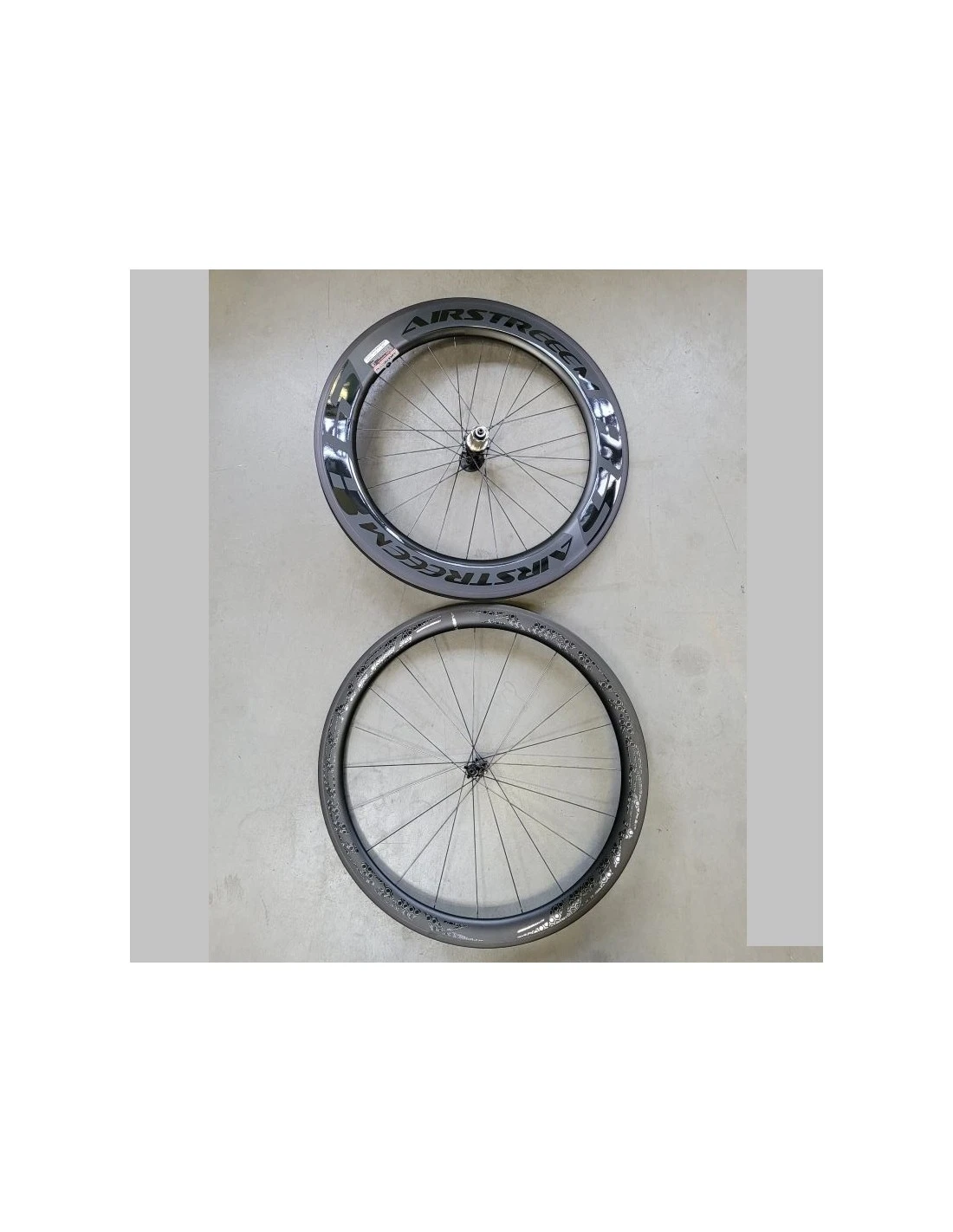 Der Laufradsatz besteht aus einem Airstreeem Aero 85er Hinterrad und einem Airstreeem Etappensieger 50mm Vorderrad