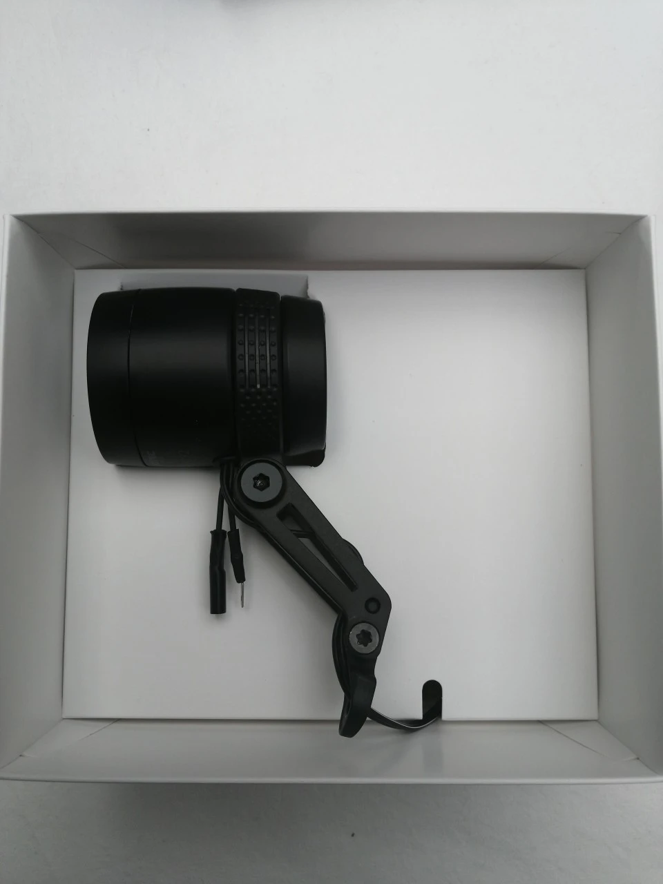 inkl. anschraubbarem Front-Rückstrahler | Befestigung: Gabelkrone | schwarz eloxiert | An-/Ausschalter: Ja
