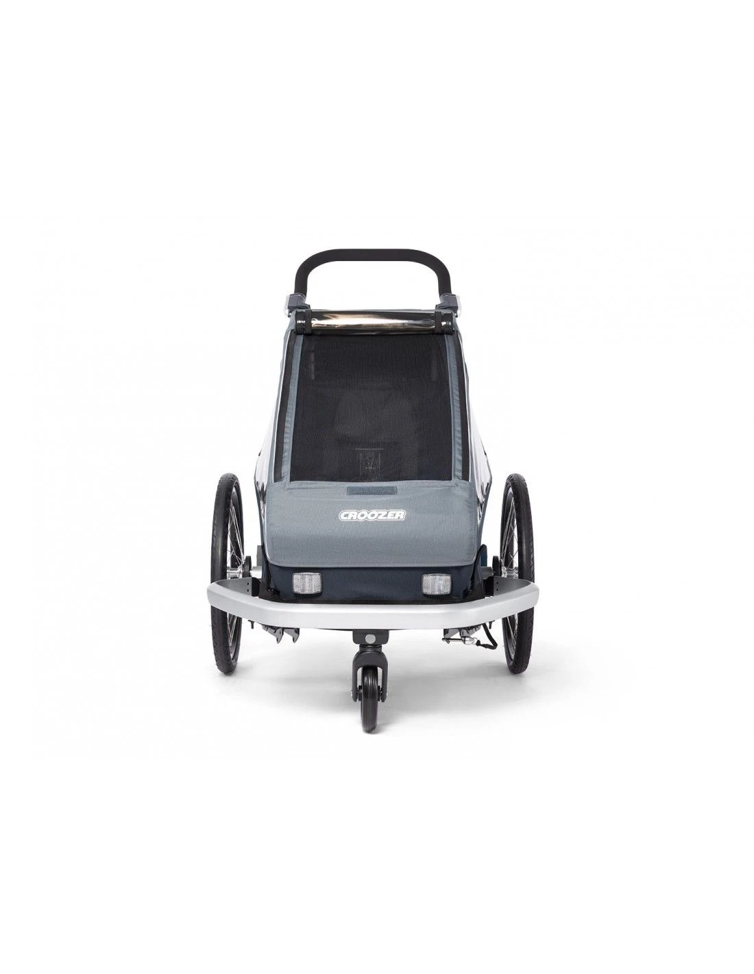 Kinderfahrradanhänger mit 1 Sitzplatz. 2in1: inkl. Fahrrad- & Buggy-Set. Mit Croozer AirPad® Federung, atmungsaktivem climatex® Sitz und integriertem Sensor-Licht.